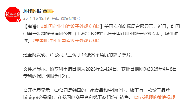 “离了个大谱”,韩国企业申请“饺子外观”专利获批
