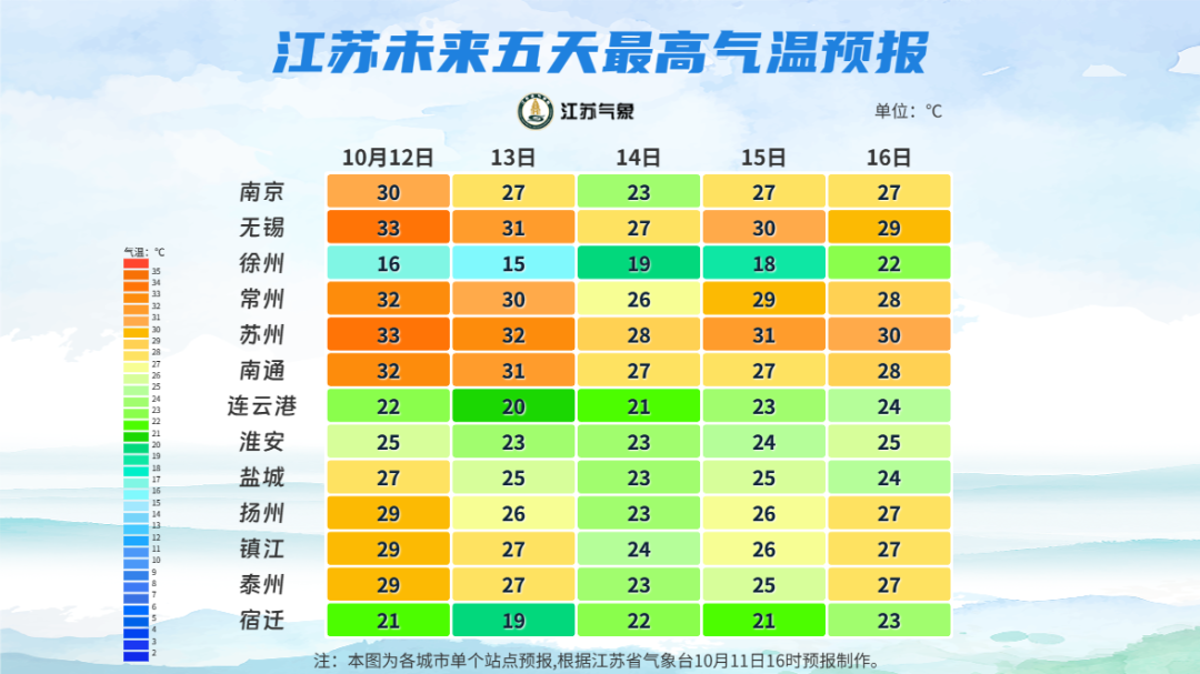 14日,全省的最高气温都将在30℃以下,苏南地区的体感会清凉不少。