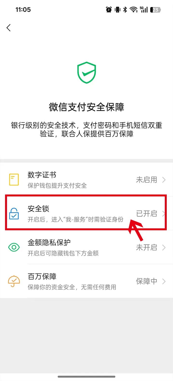 点击“我”→进入“服务”→点击“钱包”→选择“客服中心”中的“消费者保护”→“安全保障”→点击“安全锁”,选择相应的验证方式。