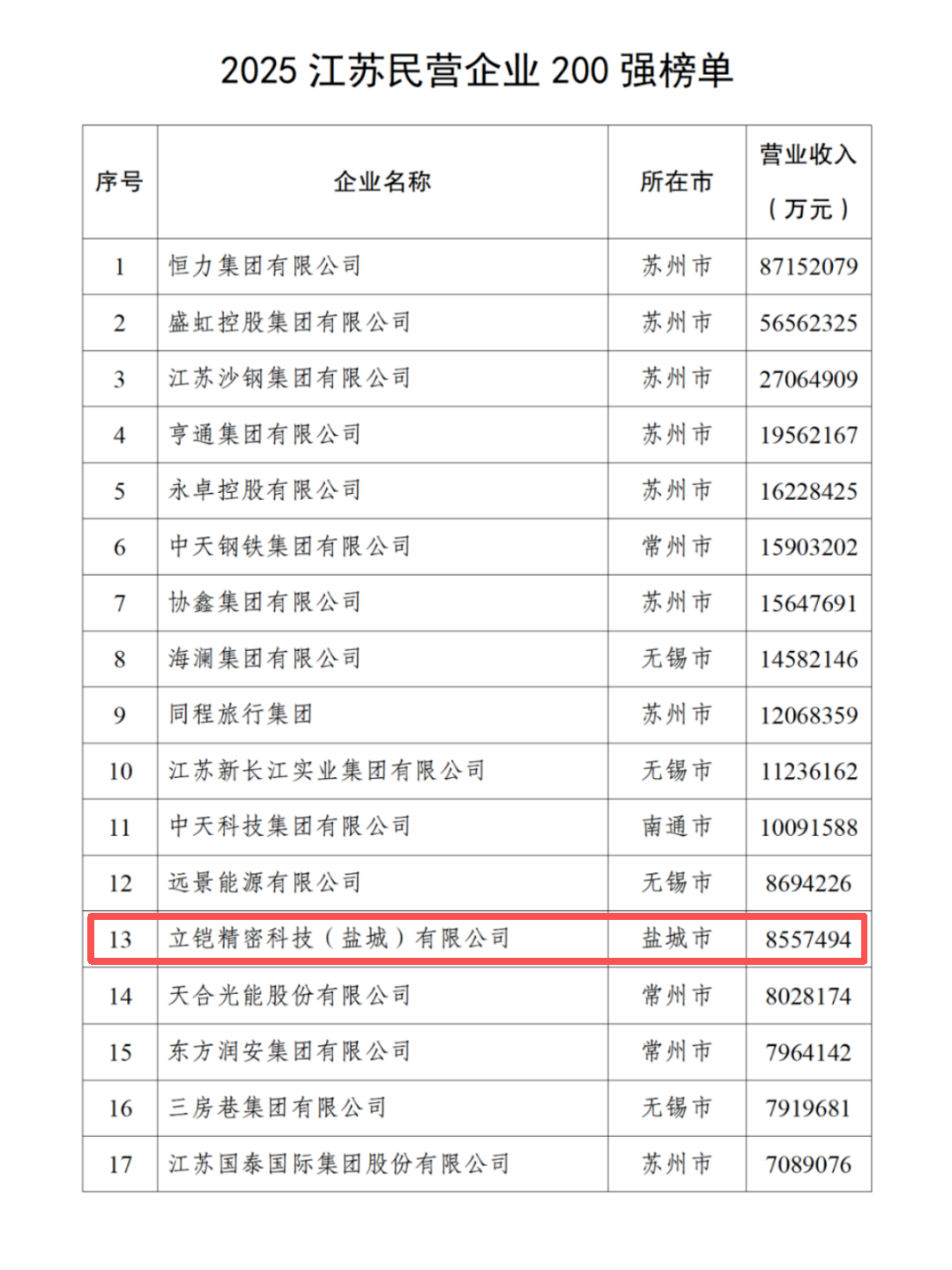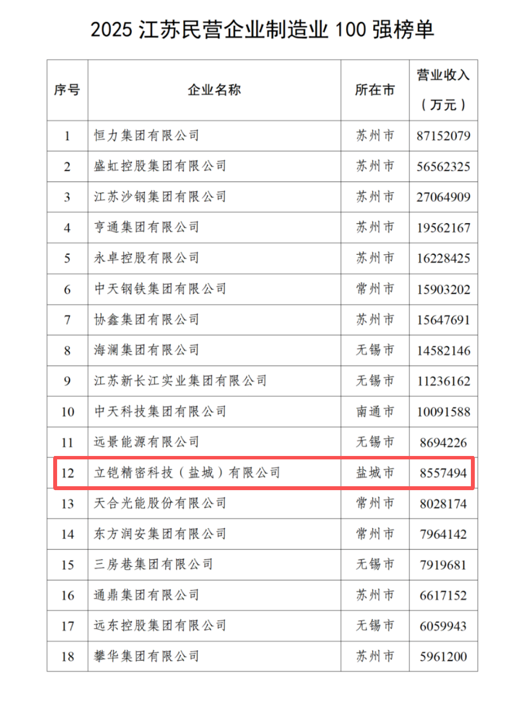 10月12日,江苏省工商联在徐州召开2025江苏民营企业百强发布暨徐州产业发展推介会。会上发布了“2025江苏民营企业200强”“2025江苏民营企业制造业100强”和“2025江苏民营企业研发投入100家”三项榜单,并同步公布了“万家民企评银行”结果。