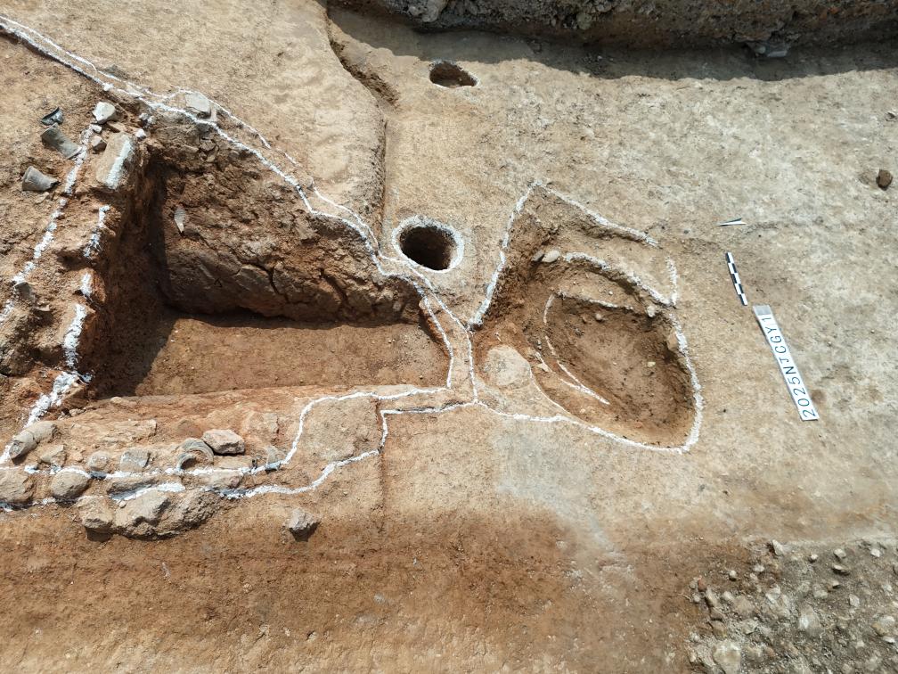 龙窑因依托山势而建,形如长龙而得名。郭塘岙窑址考古项目负责人王光远介绍,郭塘岙龙窑分为窑头、窑床、窑尾三部分。窑头的火膛规模较大,进深约2.2米,底部留有火门。而窑床比火膛后部又高出约1.2米,有利于点火后形成抽力,提升窑温。窑头处有操作面、柱洞和排水沟等附属设施的遗迹,这些遗迹都是东汉陶瓷手工业的实证。