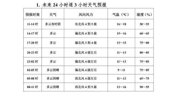 偏北风4到5级阵风6级明晨最低气温9到10℃