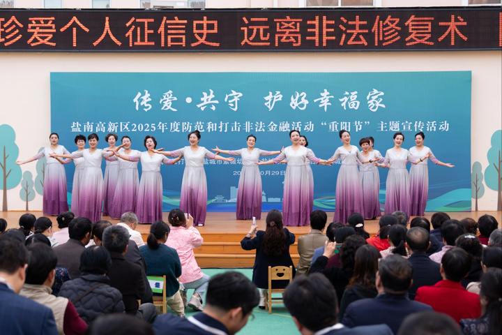 金秋的阳光温柔地洒在紫薇幼儿园的操场上,三百多名长者与孩童共聚一堂,歌声、笑声、掌声此起彼伏。10月29日下午,一场别开生面的“传爱·共守护好幸福家”重阳节防非宣传主题活动在这里温情上演。这场由盐南高新区防范和打击非法金融活动机制办公室牵头,联合盐城紫薇幼儿园共同打造的活动,不仅是一次节庆聚会,更是一次关于“守护”的生动诠释——用金融力量守护教育未来,用知识传递筑牢家庭幸福。