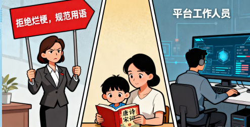 2024年10月,中央网信办部署开展“清朗·规范网络语言文字使用”专项行动,重点整治歪曲音、形、义,编造网络黑话烂梗,滥用隐晦表达等突出问题。2024年10月,教育部办公厅发布关于进一步加强中小学规范汉字书写教育的通知,引导师生在正式写作和公共场合中避免不当使用“谐音字”。今年6月,抖音发布关于治理网络“黑话烂梗”的公告。