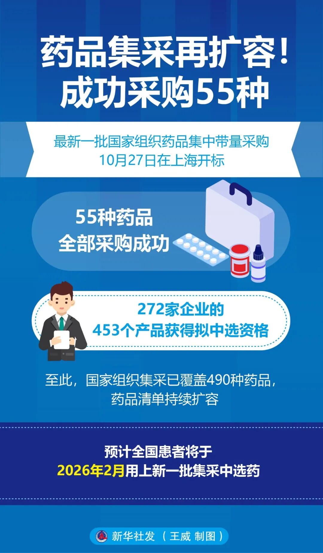 10月31日,备受社会关注的第十一批国家组织药品集采拟中选结果结束公示。该结果即将正式公布,预计患者将于2026年2月用上新一批质优价宜的中选药。