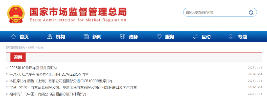 召回编号S2025M0172V:自2025年11月16日起,召回2025年4月16日至2025年7月4日期间生产的部分进口2025款CB1000R型摩托车,共计37辆。