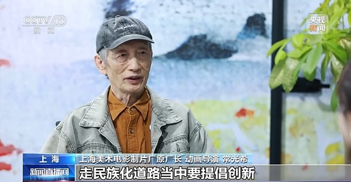 上海美术电影制片厂原厂长、动画导演常光希:走民族化道路当中要提倡创新,不模仿别人,不重复自己,把我们中国的动画学派的文化文脉能够传承下来。在新的时代里面,年轻导演在中国动画的长河当中,能够找到在今天的语境,符合当今的观众喜好,贴近生活,来创造新的东西。