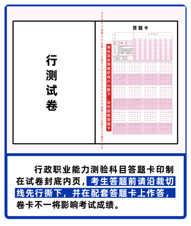 ●行政职业能力测验科目,采用“卷卡合一”方式,试卷、题卡成套印制。