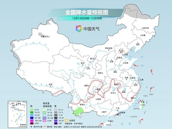 中国天气网讯今天(12月13日)寒潮将继续影响我国,降温核心区域转移到南方,重庆、江西、浙江、江苏等地最高气温将创今年下半年来新低。同时,随着寒潮干冷气团占主导,北方降雪基本结束,南方阴雨也明显收敛。明天,最低温度0℃线将南压至浙江南部、江西北部、湖北南部一带,不过寒潮影响进入收尾阶段,我国大部地区将逐步开启升温模式。