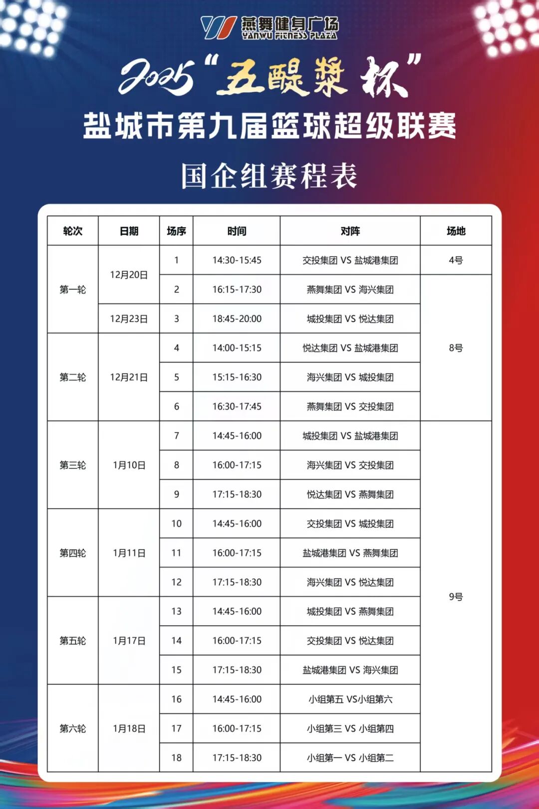 篮球超级联赛一直是盐城市体育界一年一度最具影响力的盛会之一,由盐城市总工会、盐城市体育总会、燕舞集团有限公司三家单位联合主办,盐城市城市资产投资集团有限公司协办。江苏燕舞健身管理有限公司凭借其丰富的赛事承办经验和专业的场地设施,承担了本次比赛的承办工作,为球员和观众提供了优质的比赛环境和服务保障。而江苏震洲五醍浆酒业有限公司作为独家冠名,继续为赛事注入强大的资金支持和品牌活力,持续提升赛事影响力。