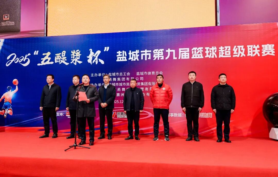 12月20日下午,2025“五醍浆杯”盐城市第九届篮球超级联赛在盐城市燕舞健身广场盛大开幕。随着一声清脆的哨响,现场气氛瞬间被点燃,为期多日的篮球盛宴正式拉开帷幕。