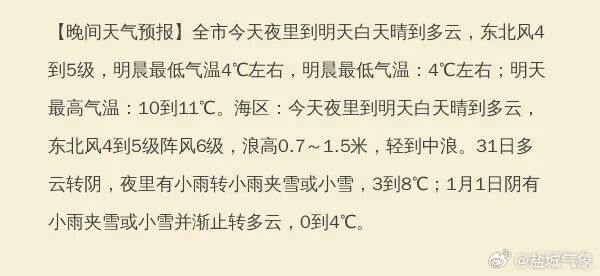 据盐城市气象台最新预测