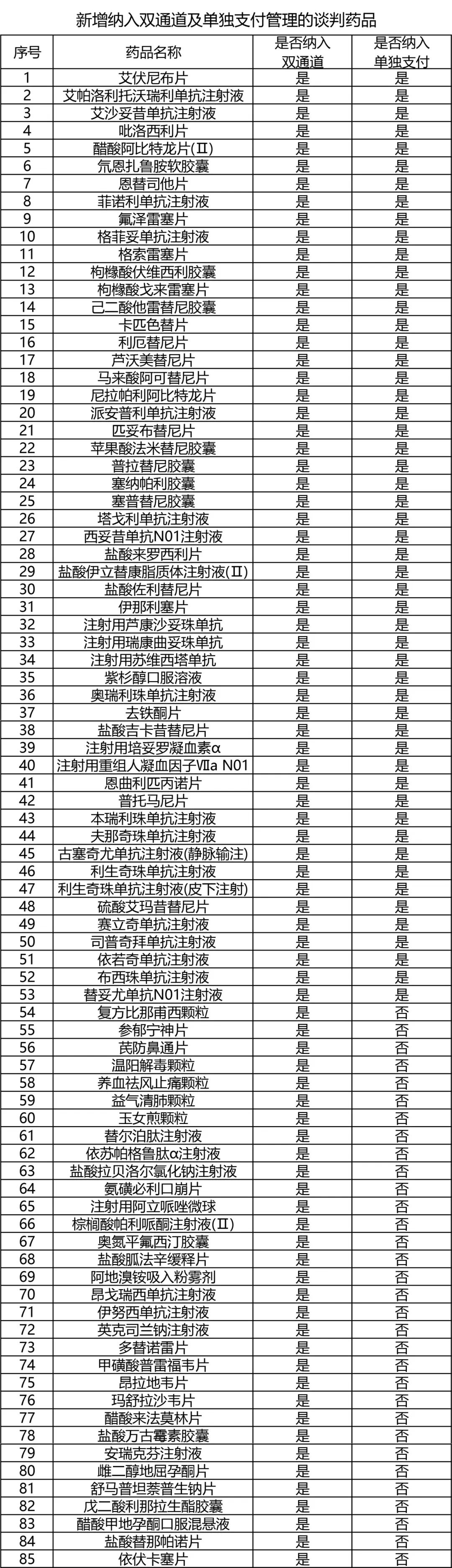 “盐城医保”微信公众号-医保服务-国谈“双通道”药品一图清