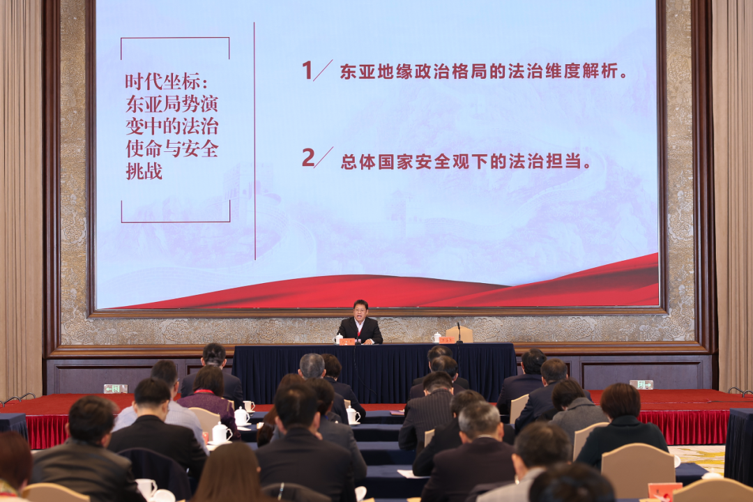 研究会汇聚江苏政法机关、高校与科研机构顶尖资源,着力构建跨学科、跨系统、跨领域的战略研究合力,不仅有效贯通“理论一政策一实践”全链条,更显著提升应对重大风险与复杂挑战的研判能力与响应效能。会议发布了2026年江苏省法学会国家安全法学研究会研究课题选题。在首届学术年会上,新当选副会长、东南大学外国语学院院长刘克华作了题为《法理铸牢统一根基法治护航东亚和平》的主旨演讲,引发全场深度共鸣。