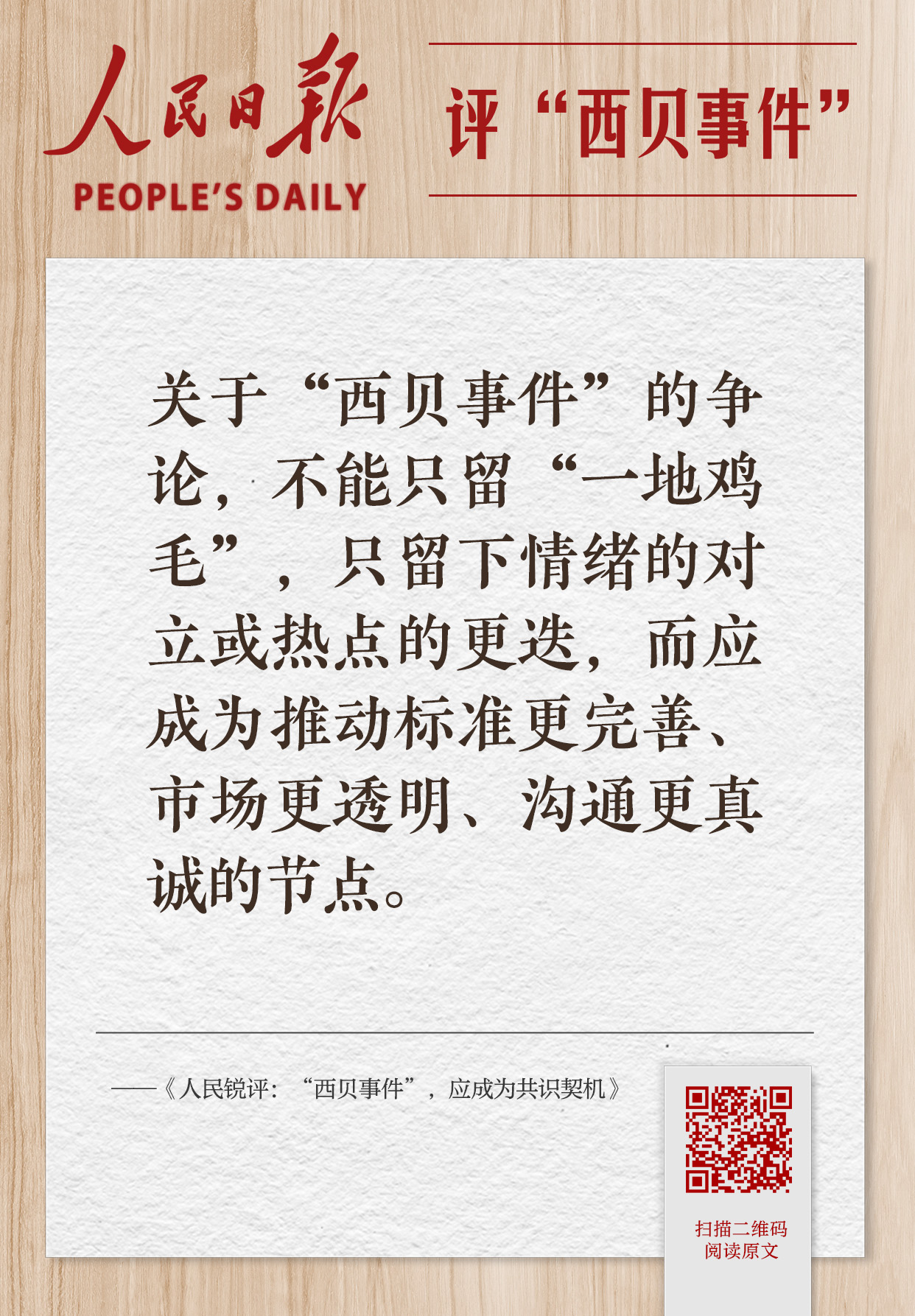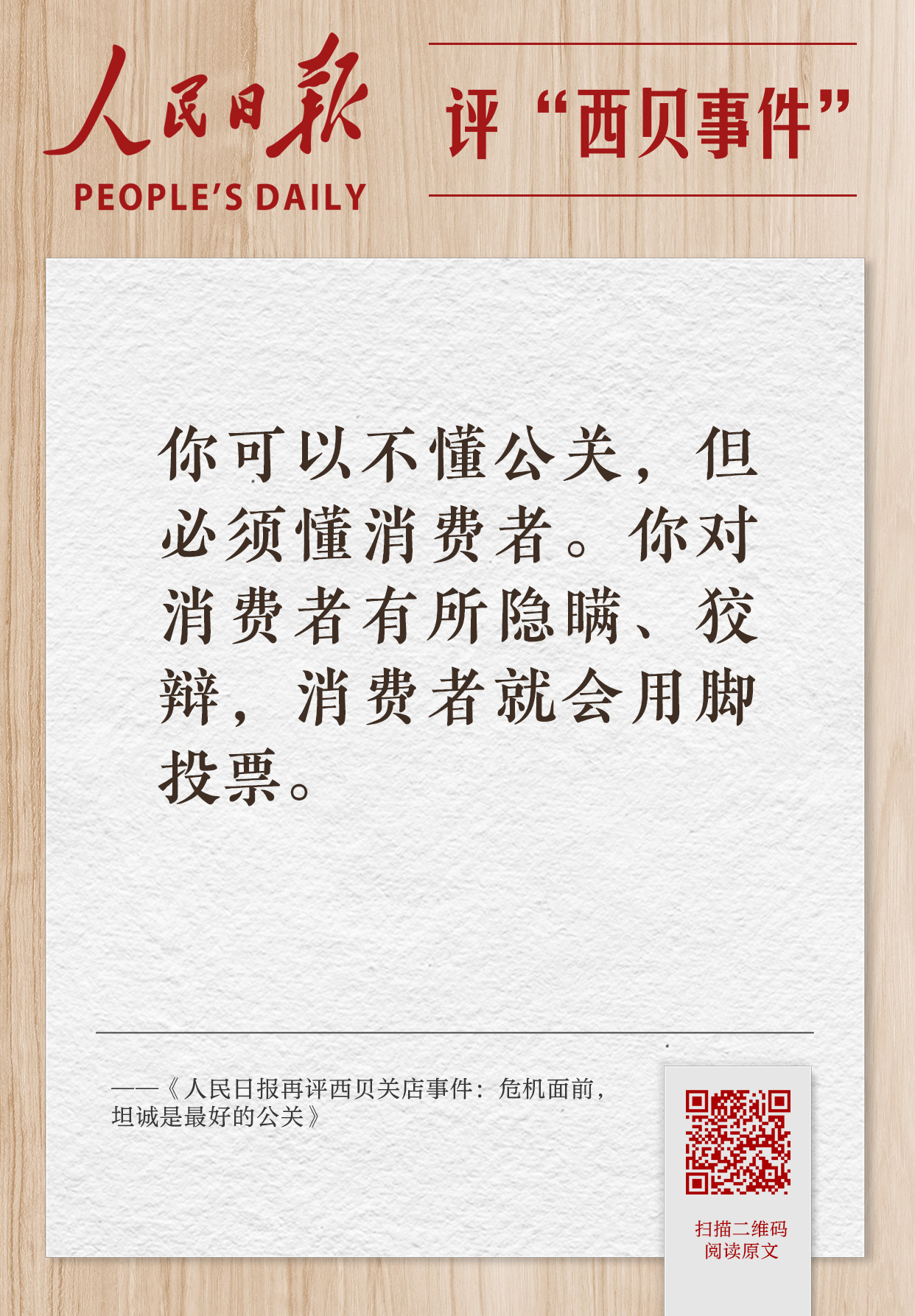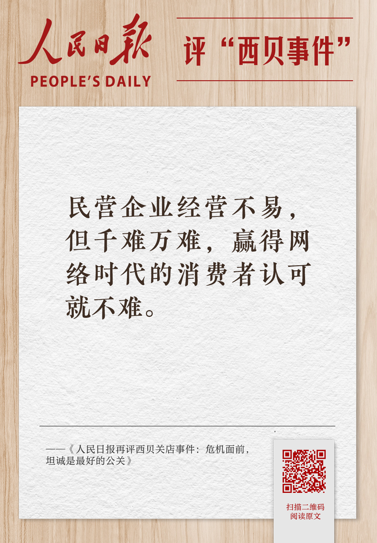 人民日报评“西贝事件”观点集纳,扫码可看全文