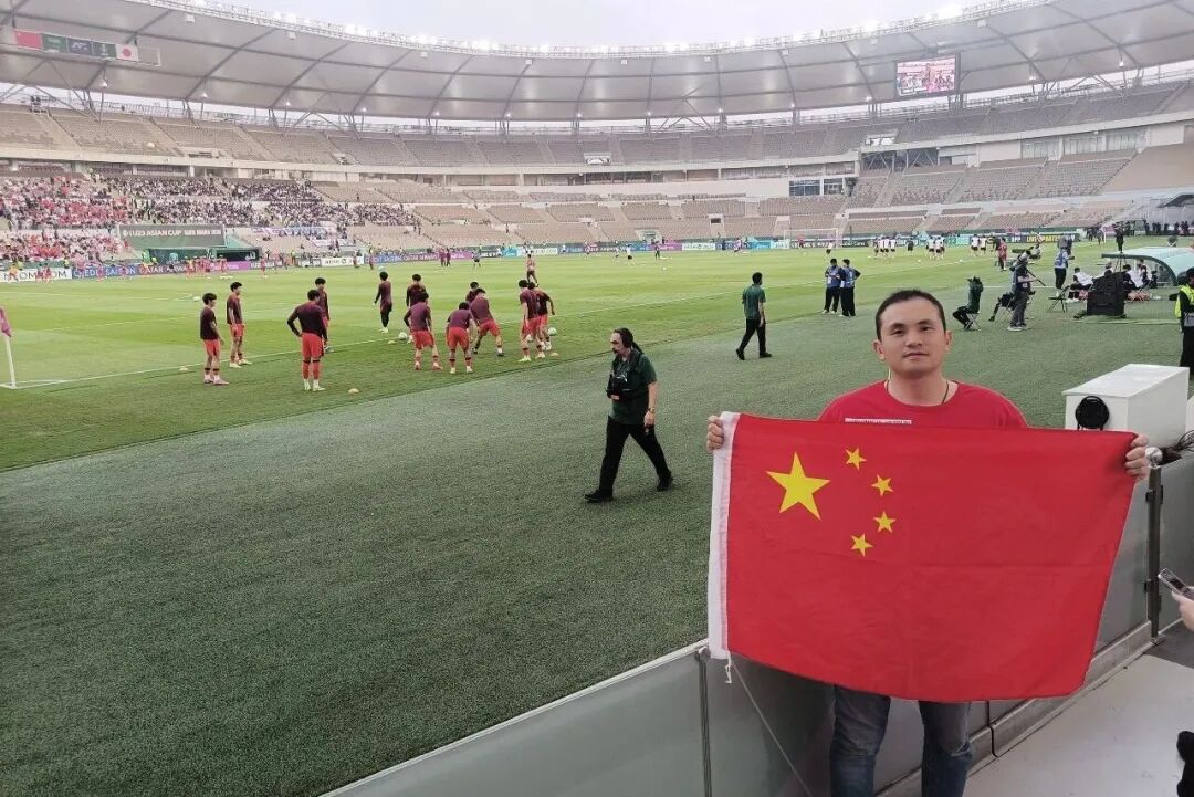 球场外,中国球迷成队聚集,大家都在为中国U23进入亚洲杯决赛而高兴。不少中国人一起举着国旗合影留念,“我们来给中国队加油。”球迷们手举小国旗、脸上贴着国旗标识、帽子上插着小国旗。“她已经陪伴中国队三场了。”旁边的同伴补充道。