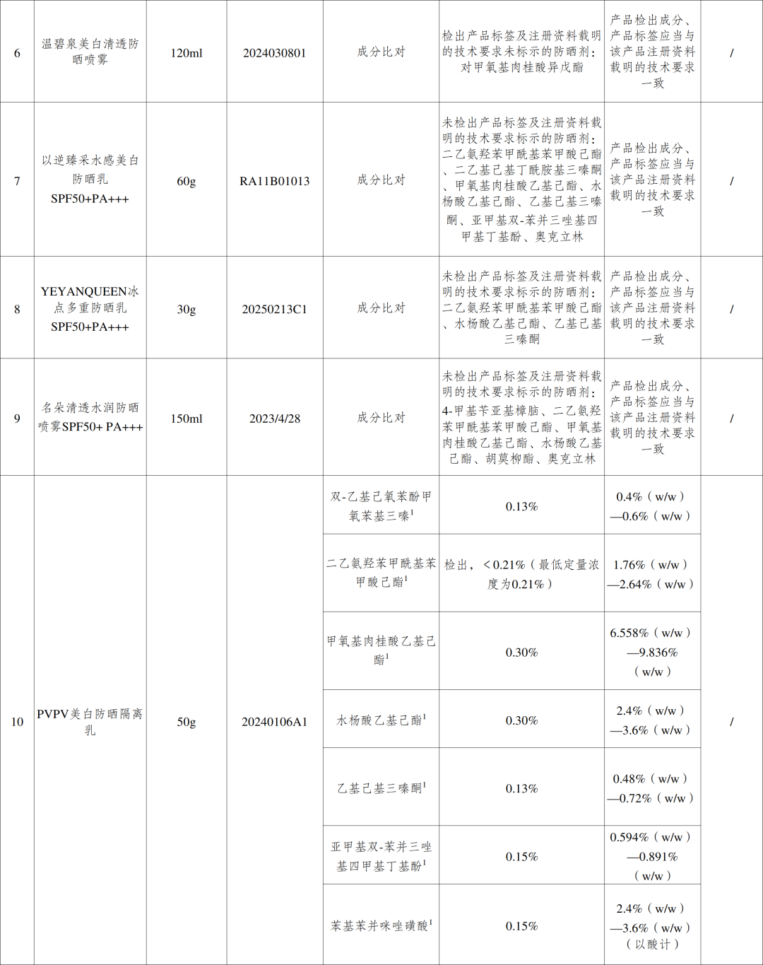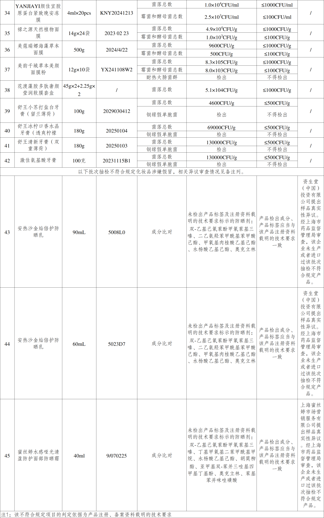 附件:45批次不符合规定化妆品信息