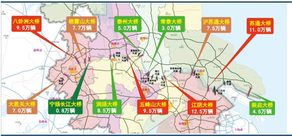 全省各个高速公路过江通道流量情况(单位:万辆次)