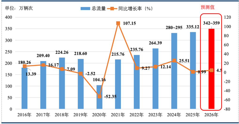 ⏫2026年春节全省高速公路出口流量预测及历年变化