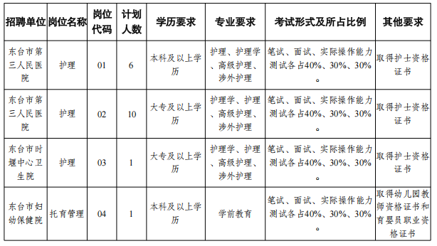 根据工作需要,东台市卫健系统部分单位现面向社会公开招聘工作人员18名。