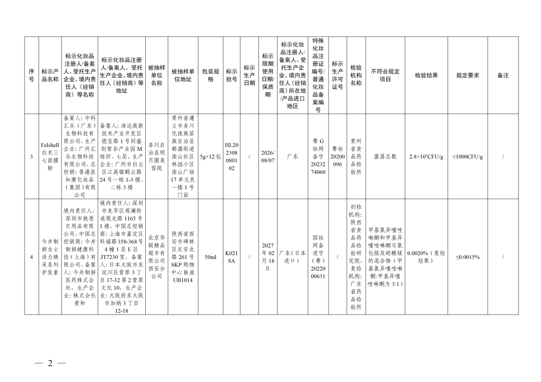 50批次不符合规定化妆品信息