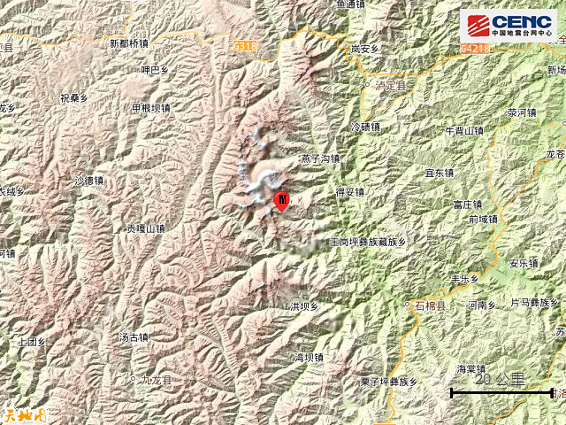 附近村镇:本次地震周边10公里内的村庄有羌火棚、倒中桥,20公里内无乡镇驻地分布,50公里内的乡镇有磨西镇、得妥镇、燕子沟镇、德威镇、冷碛镇、贡嘎山镇、兴隆镇、泸桥镇、六巴乡。