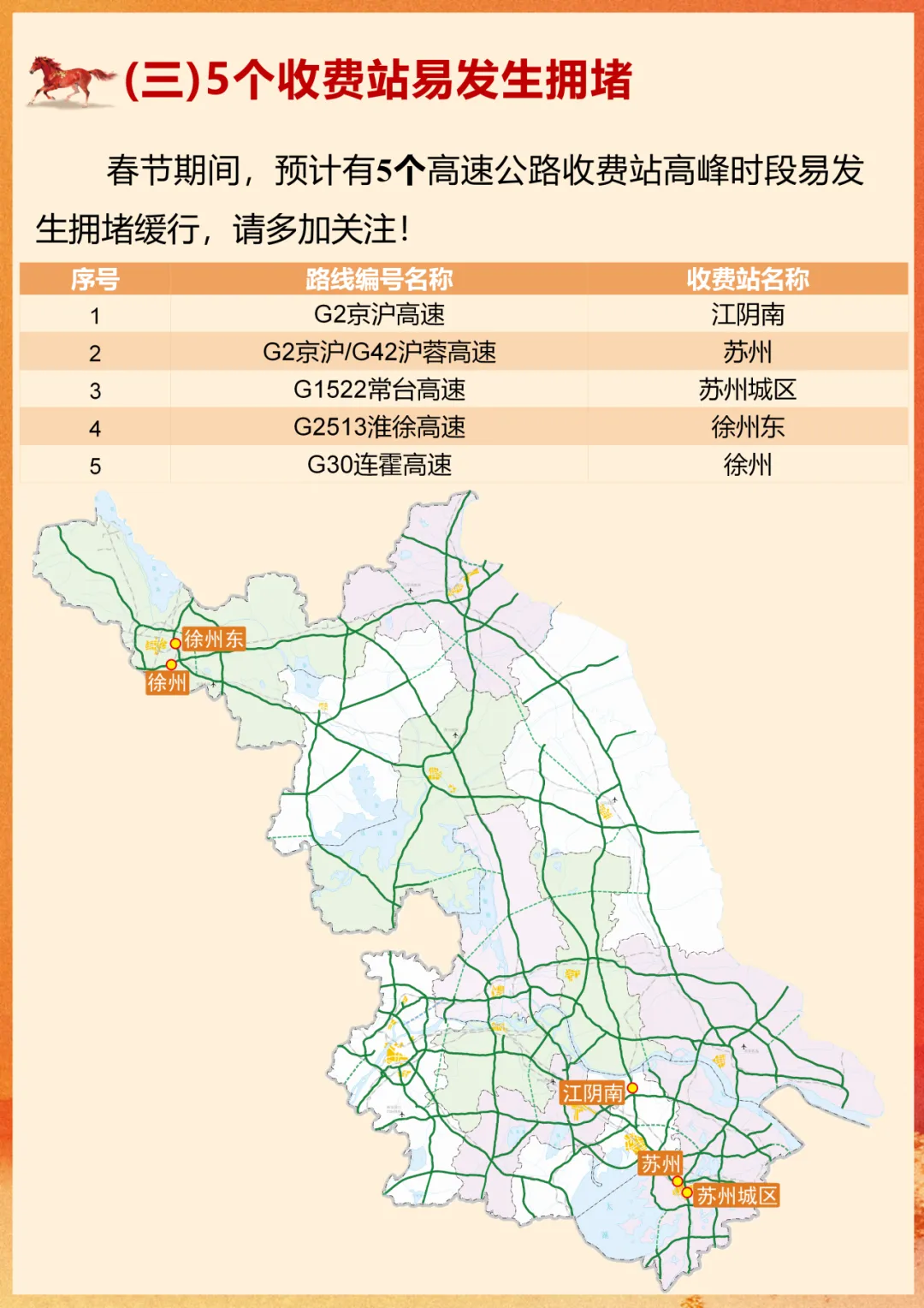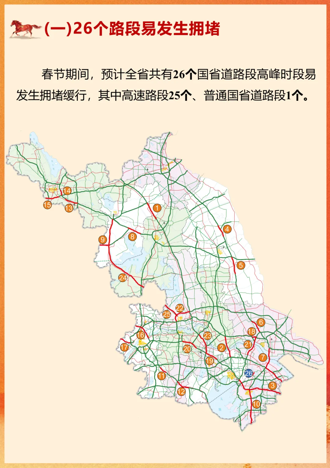 根据江苏省交通运输厅、江苏省公安厅、江苏交通控股有限公司联合发布的《2026年春节江苏国省道路网出行服务指南》: