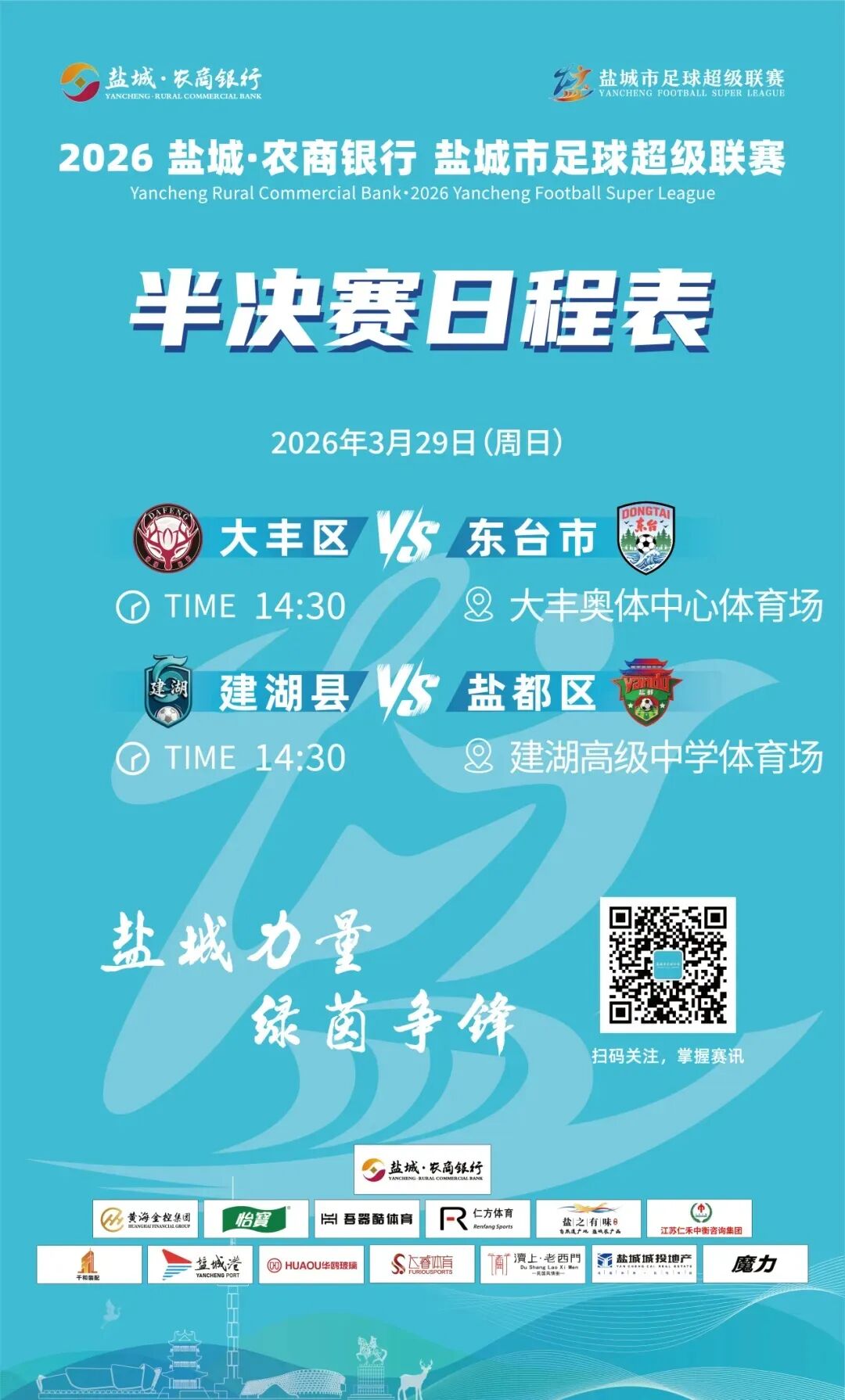 2026盐城市足球超级联赛四强出炉 半决赛3月29日开赛