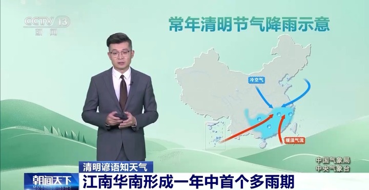 对于南方来讲,则是“清明时节雨纷纷”,这是一个多雨的时段。这个时候冷空气快速南下,暖湿气流反扑,冷暖交汇的“主战场”就在我国的江南和华南,这也是一年当中第一个多雨的时段。
