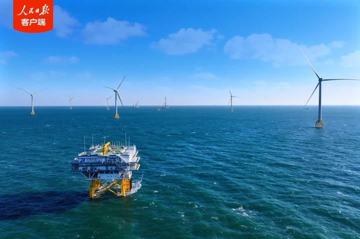 项目场址中心离岸约70公里,水深52至56米,安装了42台12兆瓦风力发电机组,总装机50.4万千瓦。按一户家庭一天用电10千瓦时测算,一台风机满负荷工作1小时,发出的电可满足1200户家庭全天用电需求。项目年发电量约17亿千瓦时,每年可节约标准煤约50万吨。