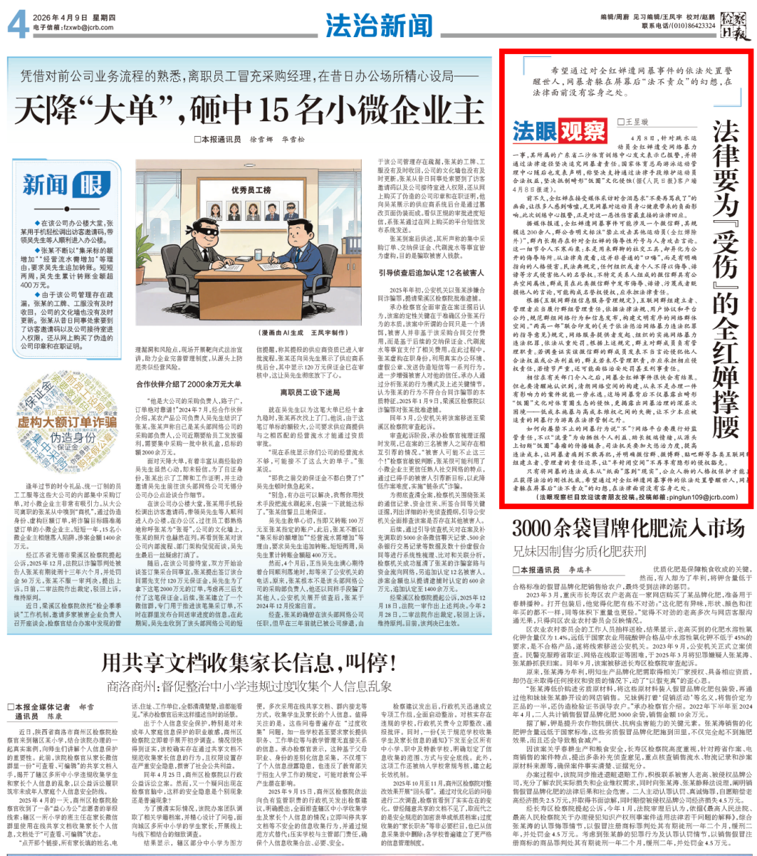 只有将网暴的违法成本从“纸面”落到“现实”,公众人物的人格权保护才能真正获得法治的刚性托底。希望通过对全红婵遭网暴事件的依法处置警醒世人,网暴者躲在屏幕后“法不责众”的幻想,在法律面前没有容身之处。