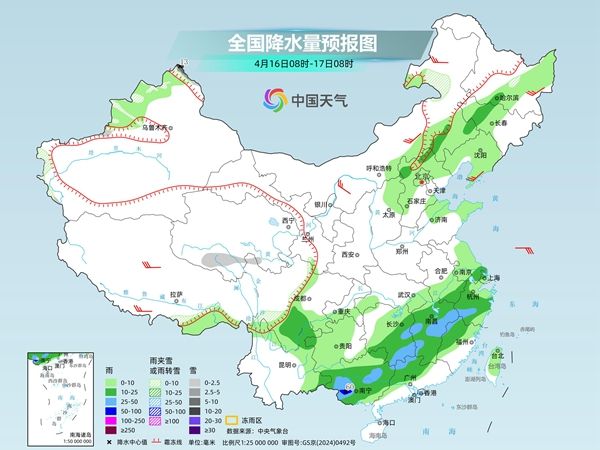 中央气象台预计,今天,新疆北疆东部和南疆盆地、西藏东南部、青海大部、甘肃河西和南部、川西高原北部、黑龙江东南部、吉林东部等地部分地区有小到中雪或雨夹雪,其中,新疆北疆东部、西藏东北部、青海东南部等地部分地区有大雪;江南中南部、贵州东南部、广西东北部、广东西北部、西藏东南部等地部分地区有中到大雨,其中,贵州东南部、湖南南部、江西中部、广西东北部等地局地有暴雨。