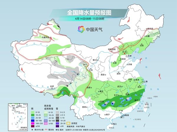 今起三天(4月14日至16日),南方大部继续维持多雨格局,并伴有强对流天气;江南一带受降雨影响,最高气温多在20℃左右,而华南多地炎热持续。在北方,东北、华北、黄淮等地虽然有降雨出没,但雨量总体不大,大部地区气温将在波动中上升。