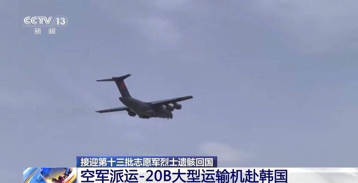 2015年以来,空军每年都派出飞机赴韩执行接迎任务。2020年开始,空军派出国产大型运输机运-20执飞此项任务,今年是运-20B首次执行接迎任务。空军同步发布了接迎第十三批志愿军烈士遗骸回国任务标识,该标识由志愿军战士雕塑、中国人民志愿军胸章、运-20B与4架歼-20编队、新时代官兵、和平鸽等图案组成,配有“英雄1950”、“回家2026”字样,两枚任务章一体设计,寓意着英雄回家血脉传承,寄托着空军官兵铭记历史、缅怀先烈的真挚情感。
