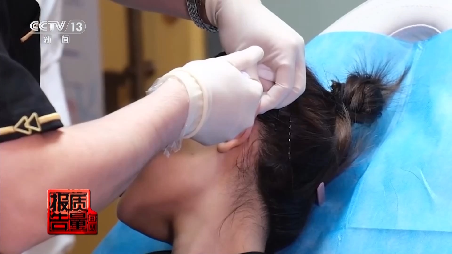上海第九人民医院整复外科主治医师许枫:她来的时候,首先看到严重的注射区域静脉淤血,也就是栓塞,通常的栓塞表现是整块皮肤呈暗红色,伴有剧痛。给她做体检的时候,就发现她整个面神经控制的区域表情都出了问题。