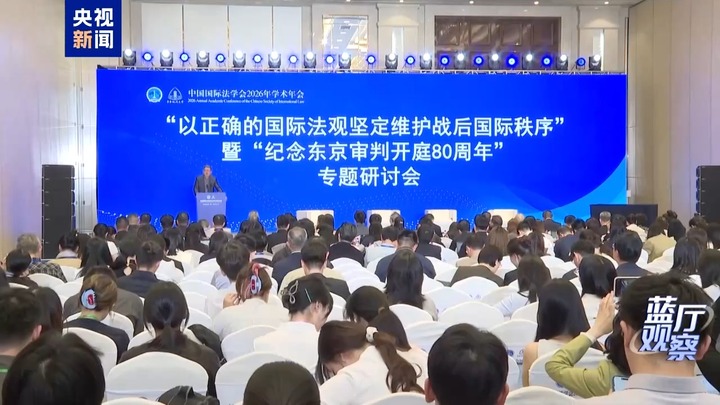 今年是东京审判开庭80周年。4月25日至26日,中国国际法学会2026年学术年会在上海举行,千余名专家学者参会。年会中专设纪念东京审判开庭80周年学术研讨会等多场专题研讨会,专家学者在接受《蓝厅观察》记者采访时纷纷表示,东京审判以确凿证据与严谨法理,判定了日本军国主义及军国主义分子发动和实施侵略战争及其相关罪行,捍卫了历史真相、国际公义和人类尊严。80年后的今天,日本右翼歪曲历史、修宪扩军,“新型军国主义”再次露出獠牙、成势为患,严重威胁世界和平稳定。国际社会必须予以坚决反击,决不允许日本军国主义死灰复燃。