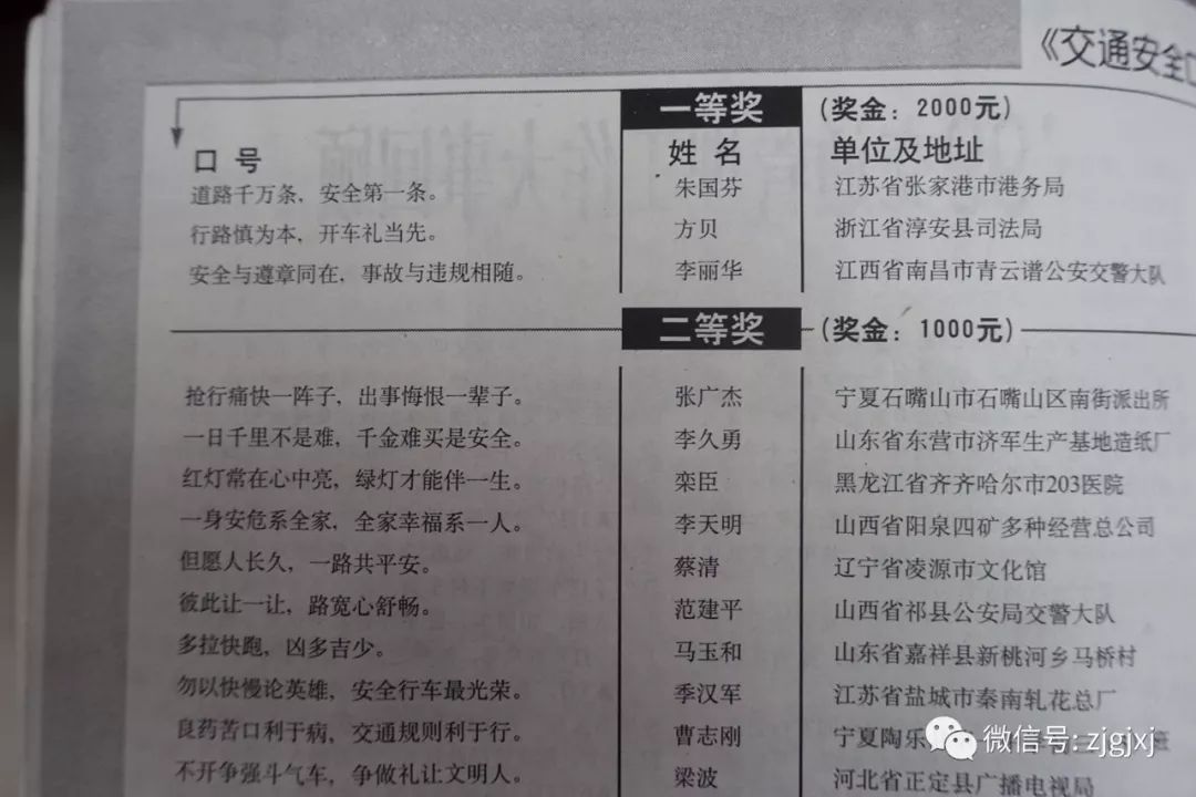 ▲获奖名单刊登在《道路交通管理》杂志2000年第一期