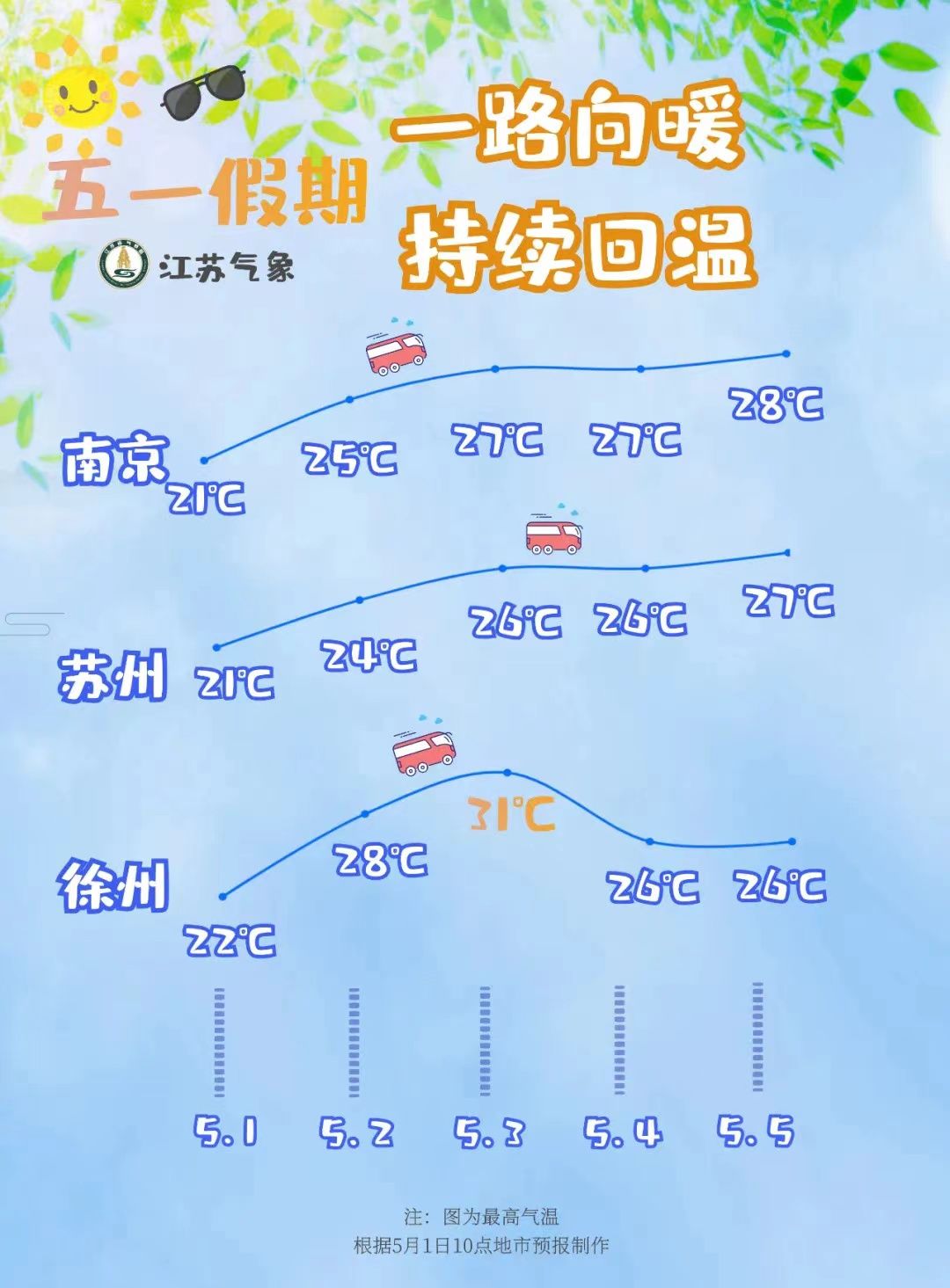五一小长假进入第二天,晴好天气也在回来的路上啦,温度逐渐回升,像是徐州3日最高气温可达31℃,短袖什么的又可以找出来啦!