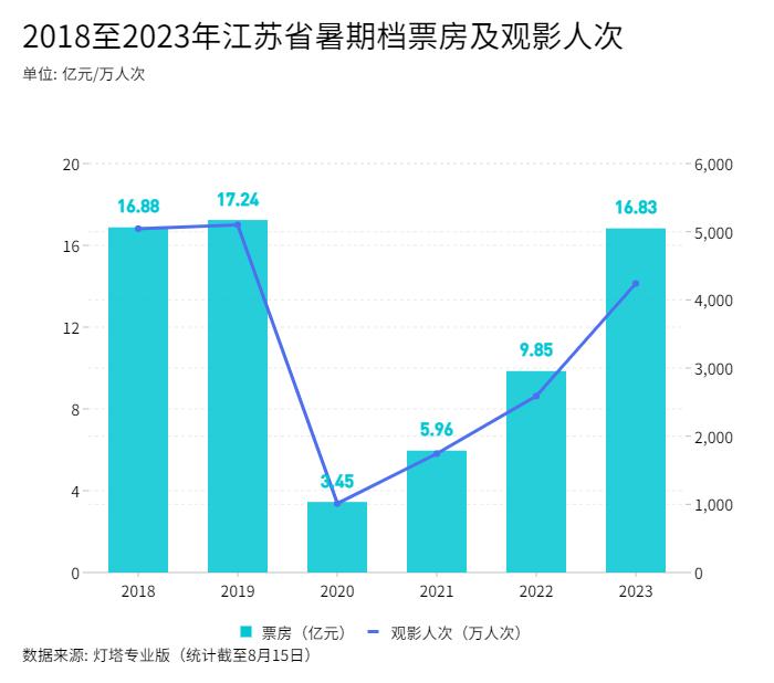 数据显示,截至8月17日,江苏暑期档票房突破17亿元,全国占比9.6%,成为全国票房重仓。不仅如此,江苏在内容生产上也展现出强劲实力,成为这个暑期档电影市场一股不可小觑的力量。