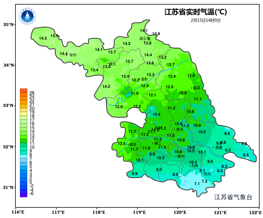 最高的沛县达到了15℃