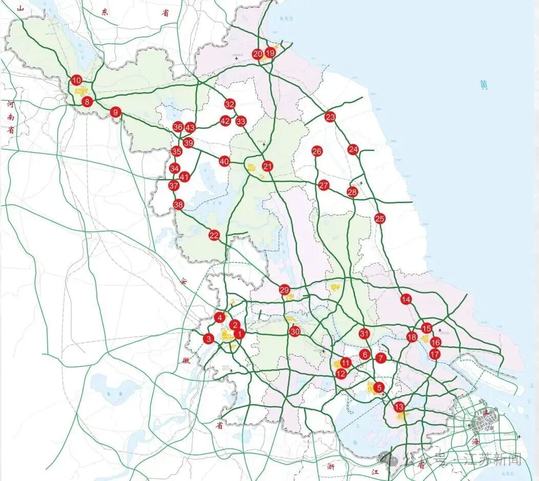 1.由北往南方向:沪苏通大桥、苏通大桥,G15沈海高速南通段,G25长深高速常州段,S39江宜高速常州段,S49新扬高速淮安段。