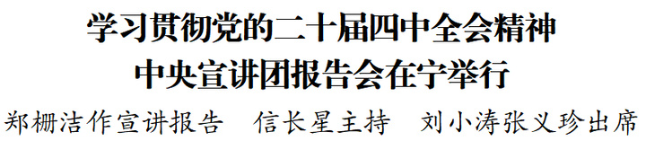 按照党中央统一部署,11月9日,学习贯彻党的二十届四中全会精神中央宣讲团报告会在南京举行。中央宣讲团成员,国家发展改革委党组书记、主任郑栅洁作宣讲报告。省委书记信长星主持报告会。省长刘小涛、省政协主席张义珍出席。