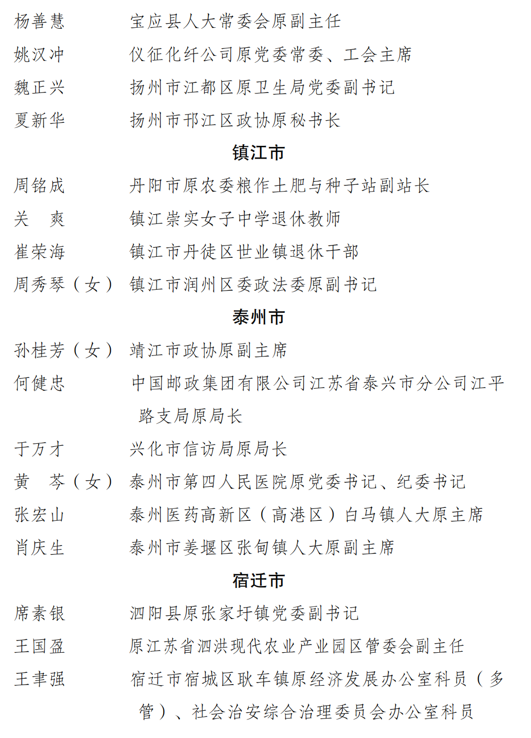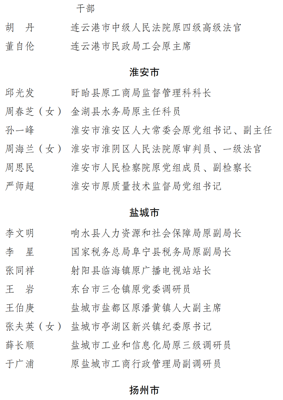 全省优秀离退休干部拟表彰对象名单