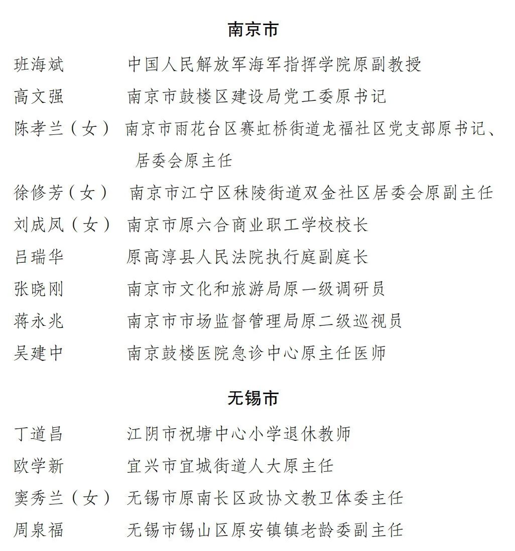 根据江苏省委组织部、省委老干部局、省人力资源社会保障厅《关于开展全省优秀离退休干部评比表彰工作的通知》,在全省各地各单位自下而上、民主择优、逐级推荐、严格审核的基础上,研究确定89名同志为全省优秀离退休干部拟表彰对象。