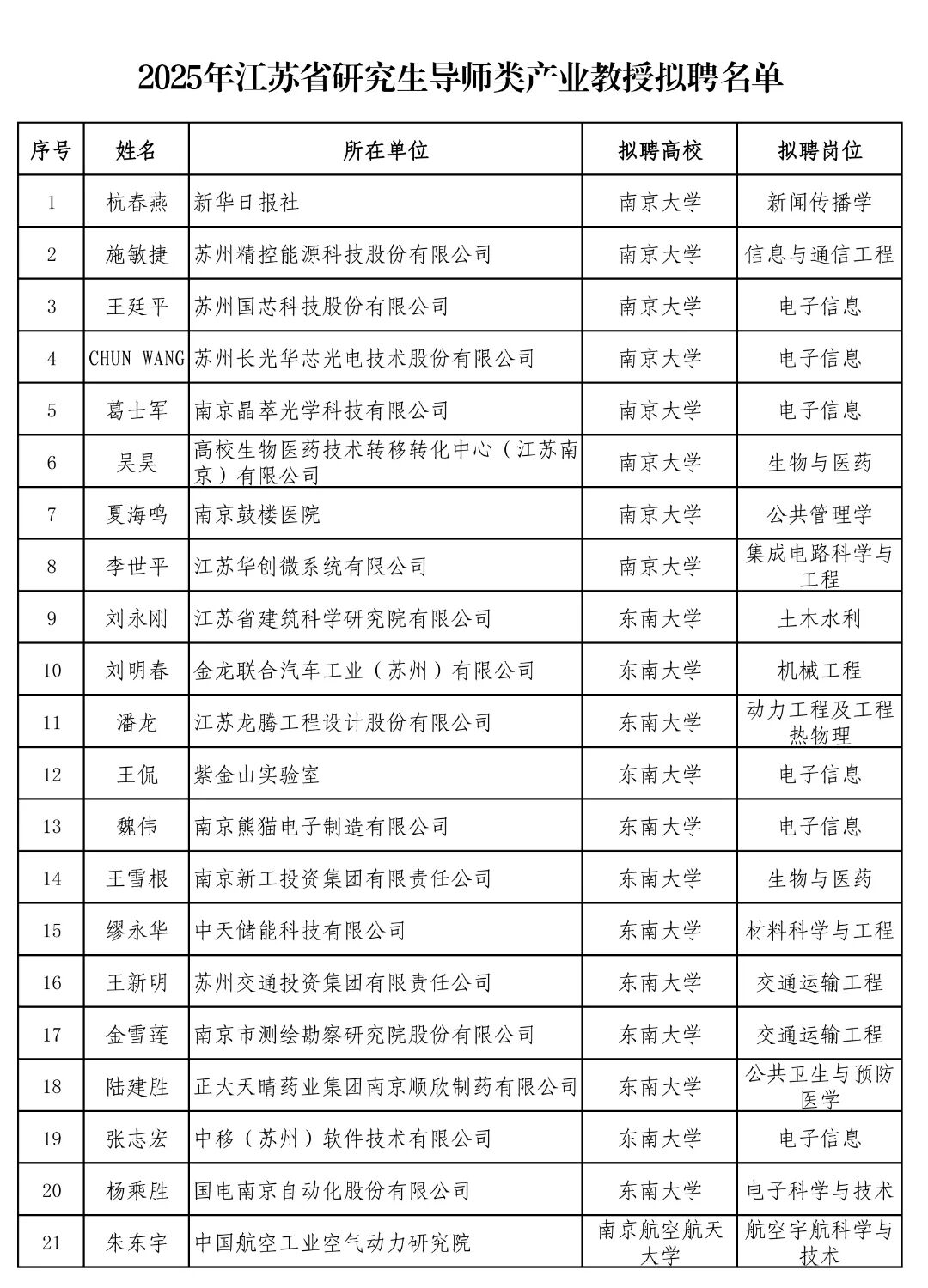 2.2025年江苏省研究生导师类产业教授拟聘名单