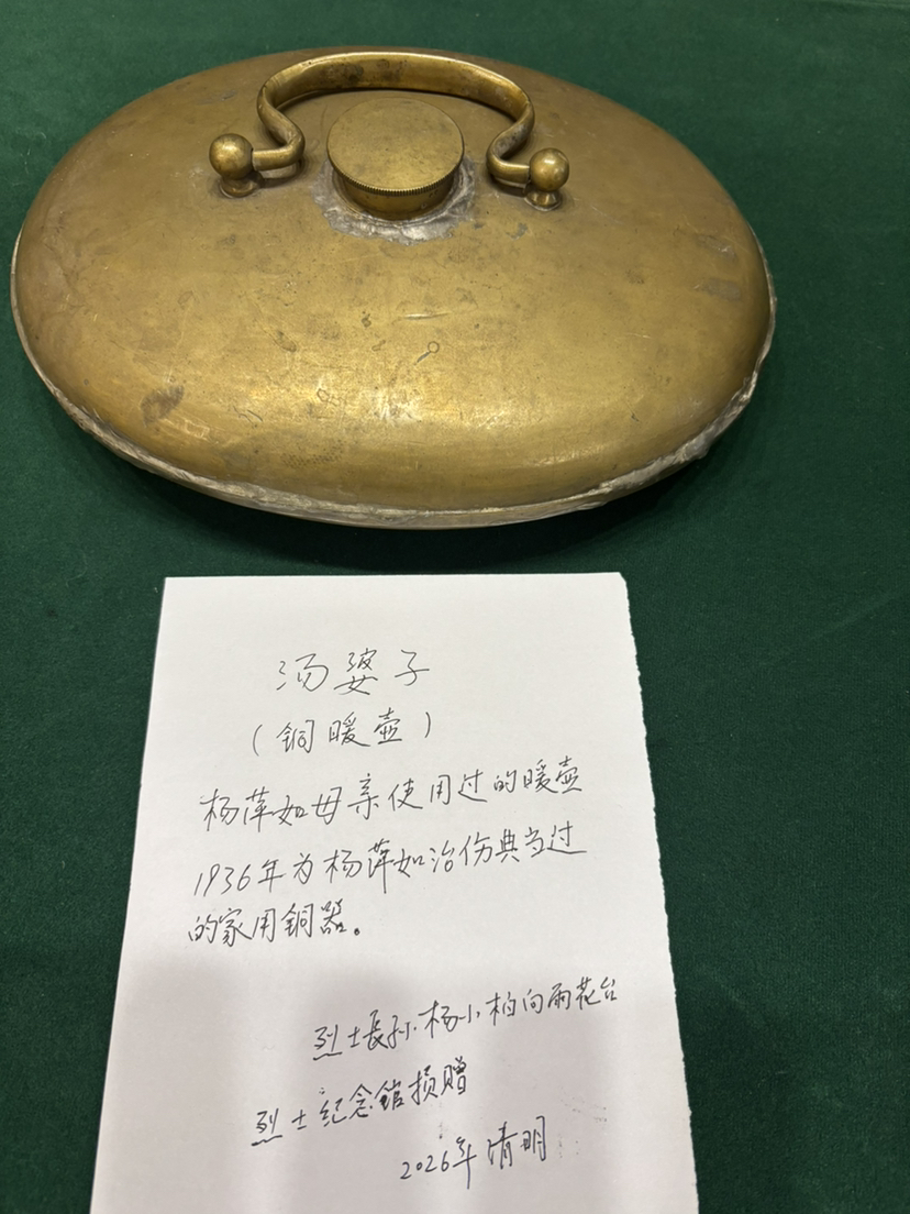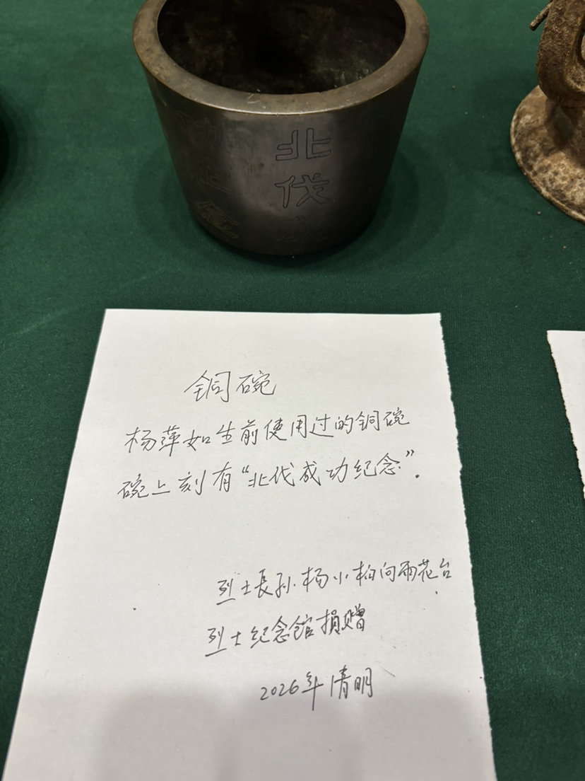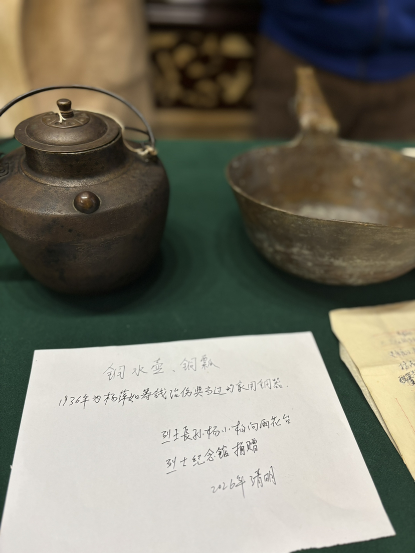 4月3日,杨萍如78岁的长孙杨小柏从北京专程赶到雨花台祭拜英烈,并捐出爷爷生前用过的马灯、铜碗等5件珍贵的遗物。