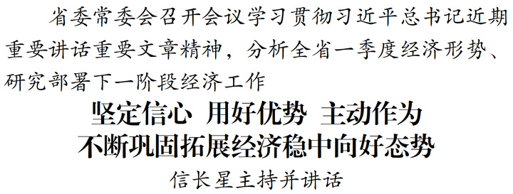 交汇点讯 4月17日,省委常委会召开会议,学习贯彻习近平总书记近期重要讲话重要文章精神,传达学习中央层面整治形式主义为基层减负专项工作机制有关会议精神,分析全省一季度经济形势、研究部署下一阶段经济工作。省委书记信长星主持会议并讲话。