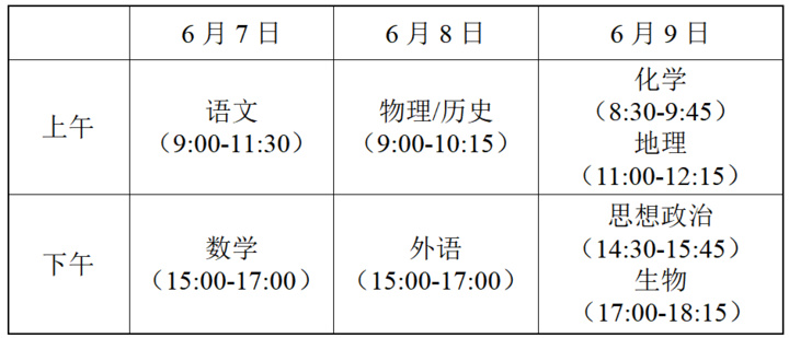 经教育部批准,我省2026年高考全国统考科目、选择性考试科目考试时间安排如下。