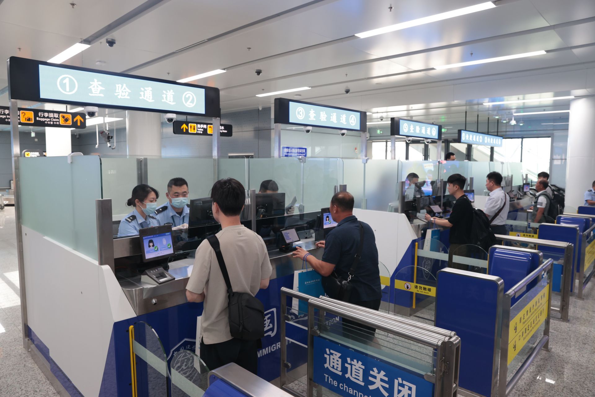 为积极服务盐城市外向型经济发展和中韩(盐城)产业园建设,今年以来,盐城机场边检站深入贯彻落实国家移民管理局、江苏边检总站和盐城市委市政府关于优化营商环境部署要求,积极推进“智慧边检”建设,全力投入T1国际航站楼边检查验场所改造。同时,深化边检通关便利化改革,优化多项利企便民举措,为国际客运航班复航按下“加速键”,有力促进盐城外向型经济发展。韩国首尔航班的恢复,标志着盐城机场正式进入T1、T2“双航站楼”时代,也重启了盐城市与韩国经贸往来、人文交流空中通道,为推动盐城开放型经济高质量发展注入新的动能。