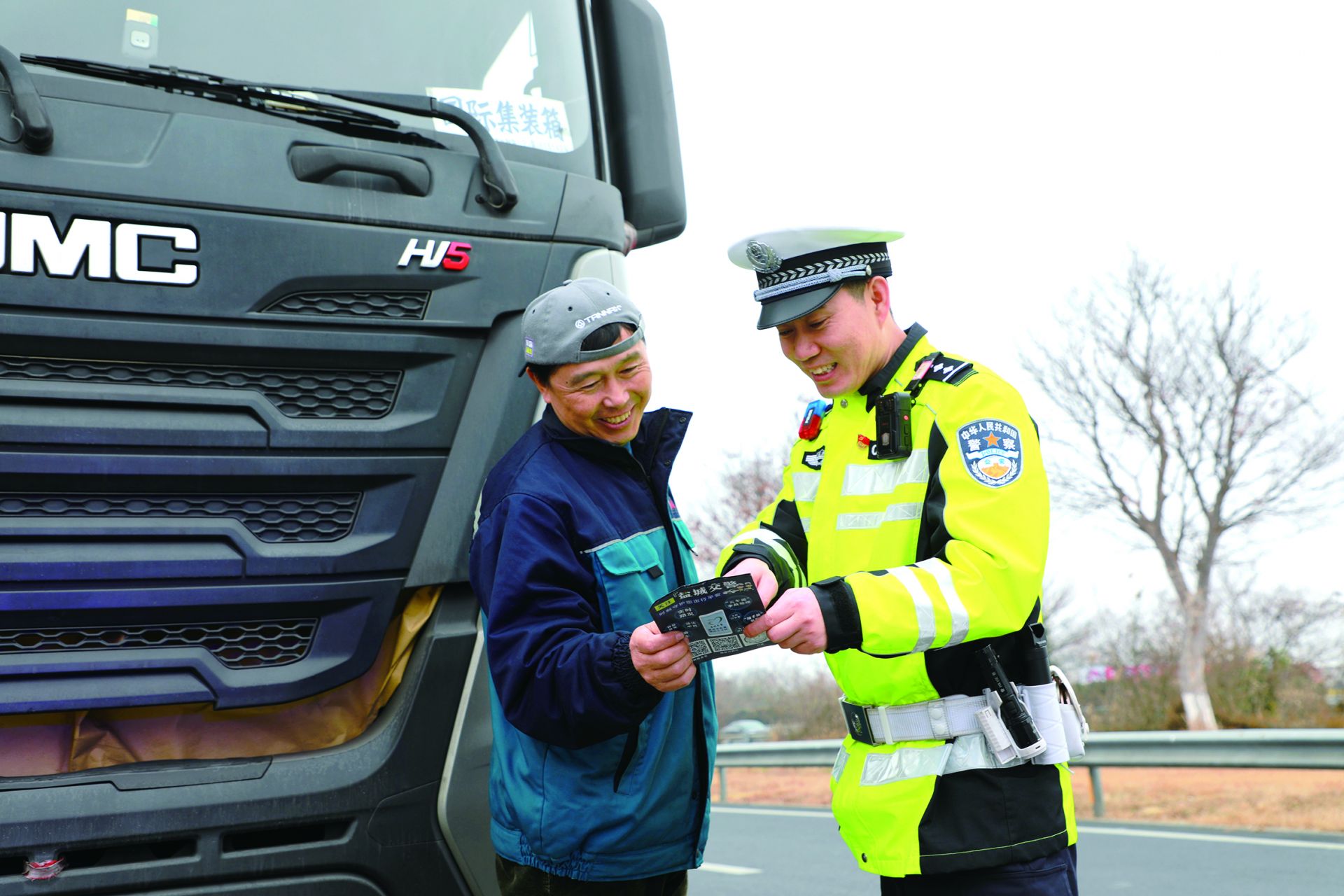 王鹏飞在巡逻中对司机开展安全宣传教育。